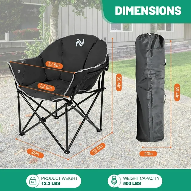 Durable Frame: Made with premium, high-quality materials, this camping chair is built to last. The sturdy steel frame construction can withstand up to 500 pounds of weight. Padded Seat & Back can provide extra comfort while sitting on it.