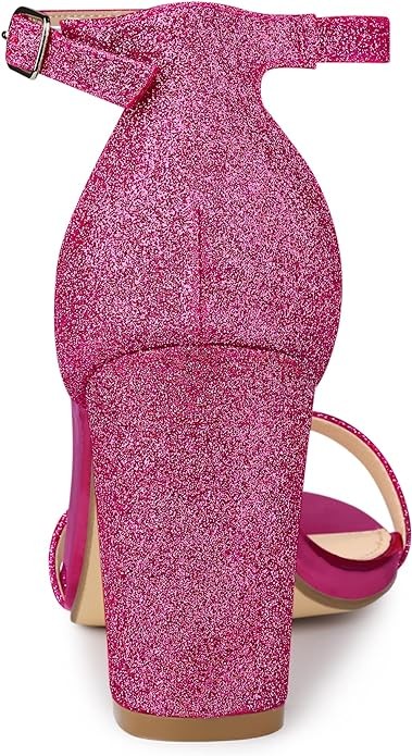 • Glitter Heels Sandals, Ankle Strap, Open Toe, Block Heel, Buckle Closure