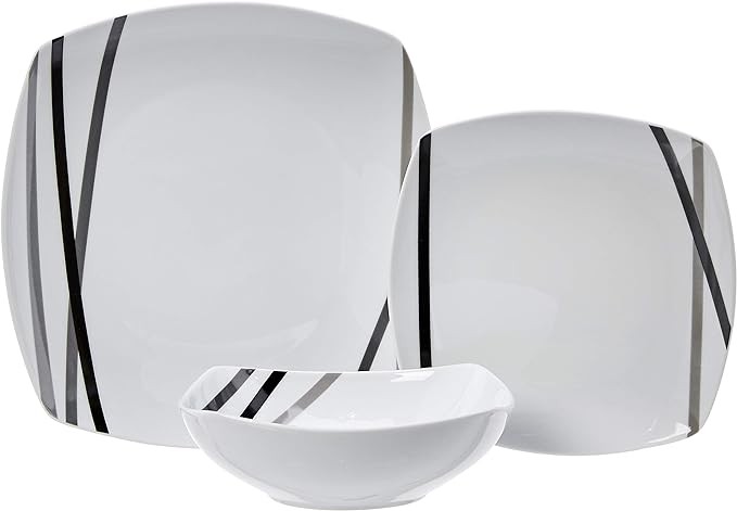 AmazonBasics 18-Piece Dinnerware Set - Modern Beams, Service for 6