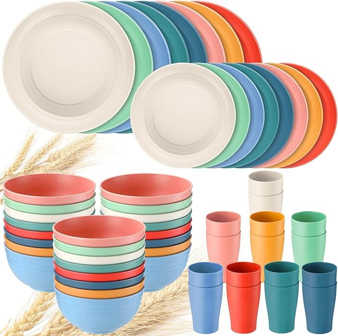 Multi Purpose Scenario Use: our wheat straw tableware is not only suitable for home and kitchen but also very suitable for parties, picnics, camping trips, travel, school, party, and so on; Plates, cups and bowls can be easily stacked without taking up too much space on your part; Plate and bowl sets of various sizes are suitable for people of different ages