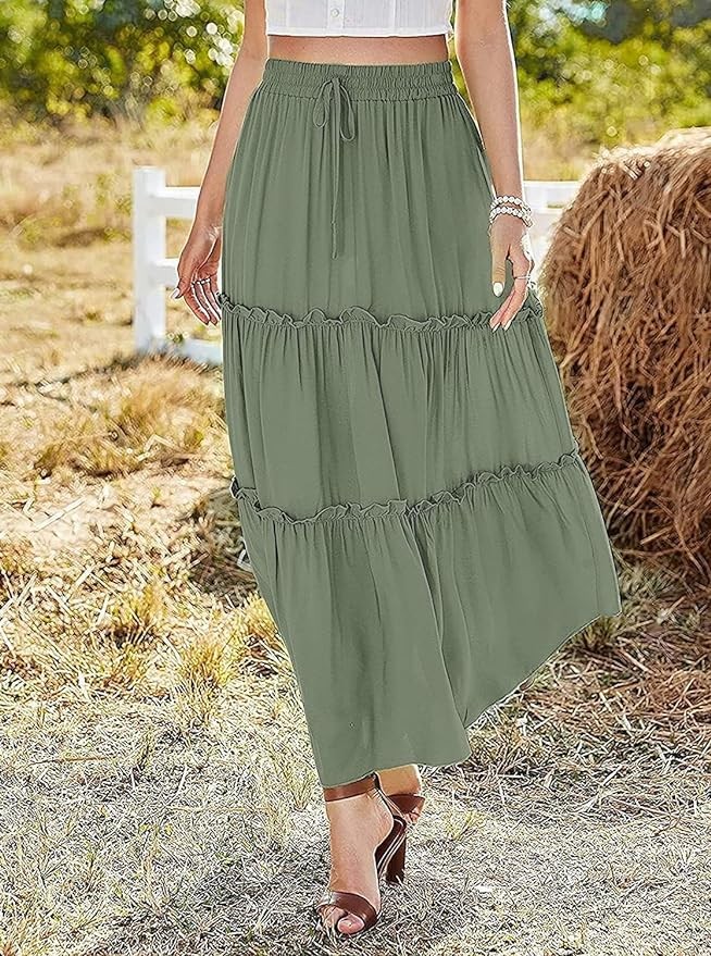 • Features: High waisted skirts for women, layered frill trim swing skirts, ruffle pleated maxi skirts, long flowy skirts above ankle length, elastic waist with drawstring decoration, casual loose fit