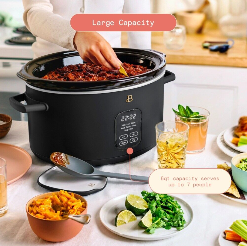Beautiful 6QT Programmable Slow Cooker, Black Sesame by Drew Barrymore