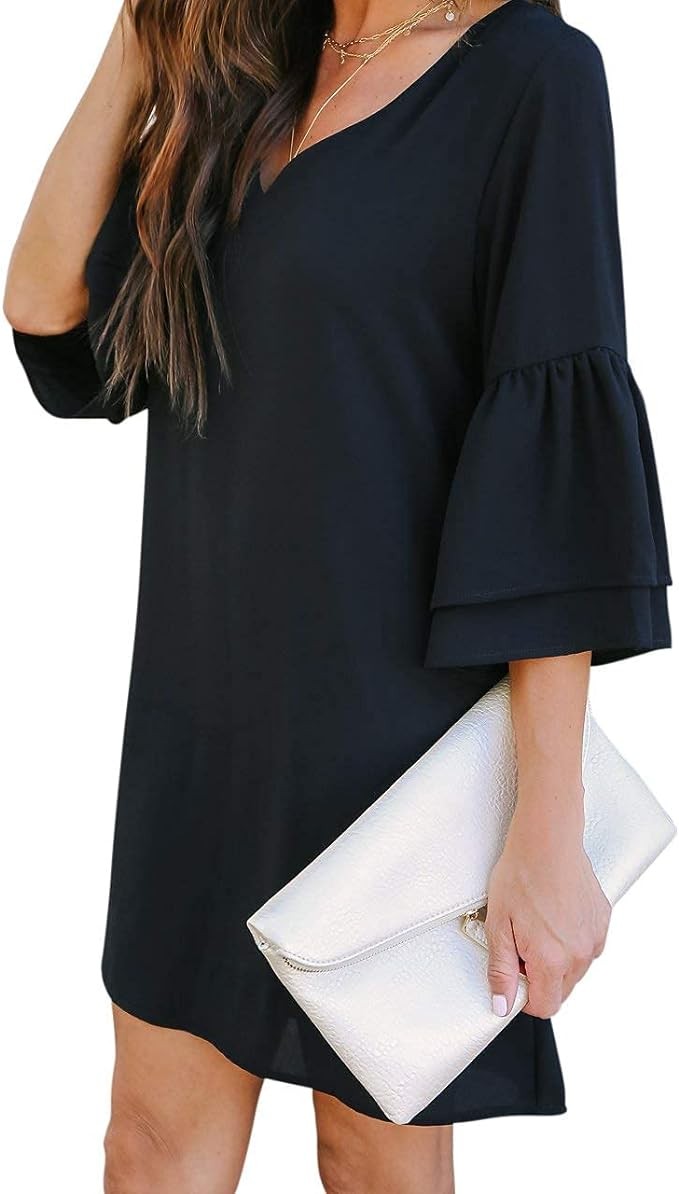 • Features: short dress, V-neck, bell sleeve, soft lining, zipper in the back. Can dress it up or down. Flattering dress, shift dress, new fashion summer dress for women 2023, sweet & cute, soft and attractive. Perfect for a wedding or graduation.