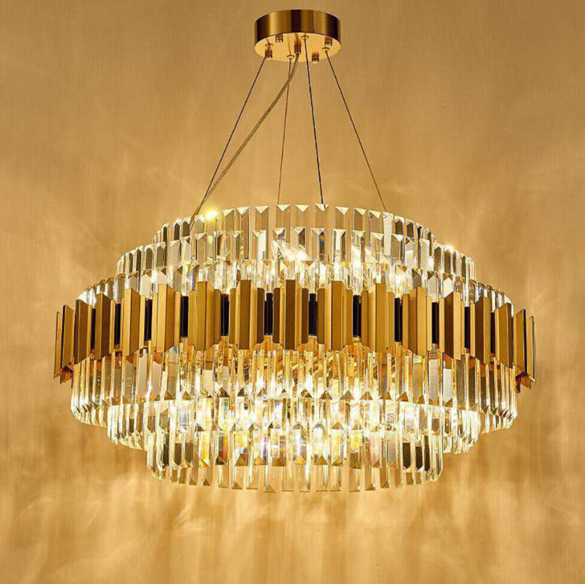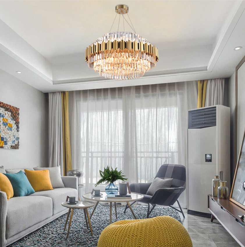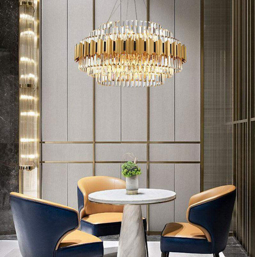 [MATERIAL]: This Chandelier Is Made Up of High-quality K9 Crystal Prisms & Polished Stainless Steel Gold Bars Which are Heat-resistant and Anti-corrosion