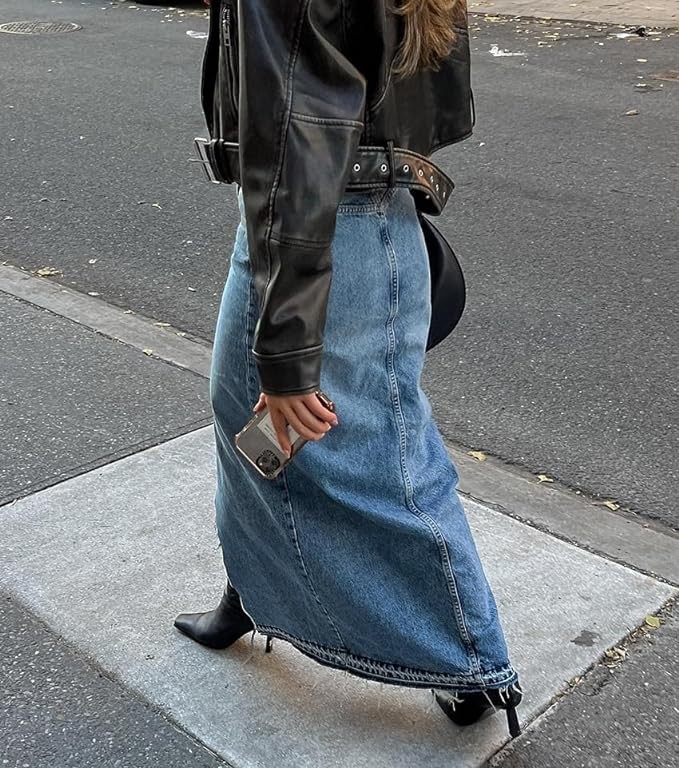 • Style: Denim skirts for women, stretch denim skirt, summer maxi skirt, asymmetrical skirt, denim skirt with split, jean skirt, slit skirt, fall or winter sexy skirt, 2024 women skirt, wrap skirt, y2k trendy, high waisted, ruched, pockets on side, ankle length, casual streetwear.