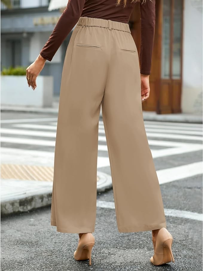 Two inseam options: Regular-30'' and Petite-28''. GRAPENT khaki pants for women feature in high-waisted wide leg style, baggy loose fit, pleated front, elastic back, zip up with button closure, 2 functional real side pockets and 2 decorative fake back pockets.