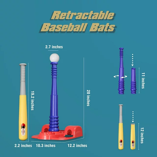 Kids T-ball Set - The YCFUN baseball toy set includes a retractable baseball bat, baseball bases, 6 balls, and a mesh bag for storing balls. These are parent-child games suited for playing indoors or outdoors, as well as multiplayer games or even playing with pets.