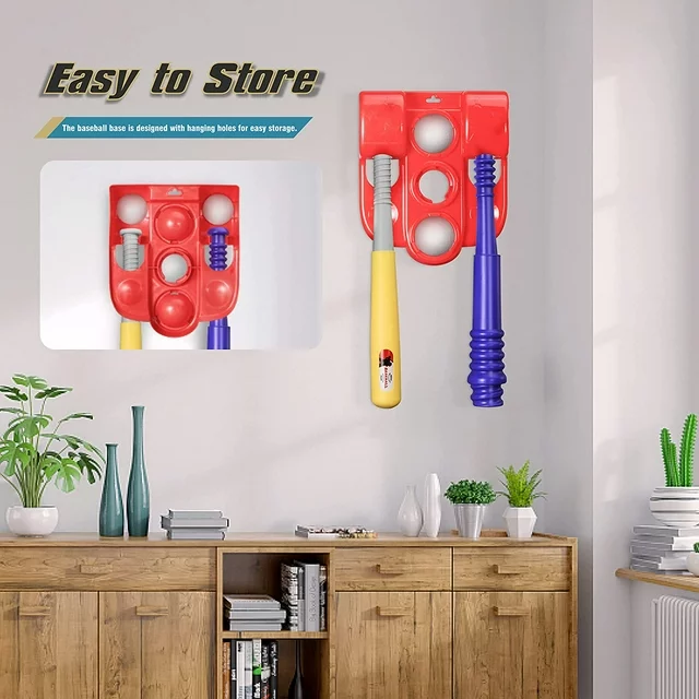 Easy To Carry And Store - The base of kids baseball tee games is equipped with hanging holes, which can be hung on the wall without taking up too much space. At the same time, there is a baseball mesh bag in the package, which is convenient to carry or store the baseball.