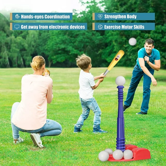 Easy For Kids To Start Playing - tball set comes with 6 plastic tee game balls and has an oversize plastic baseball bat. Kids can hit the ball easily with several practices, so as to enjoy the fun of baseball.