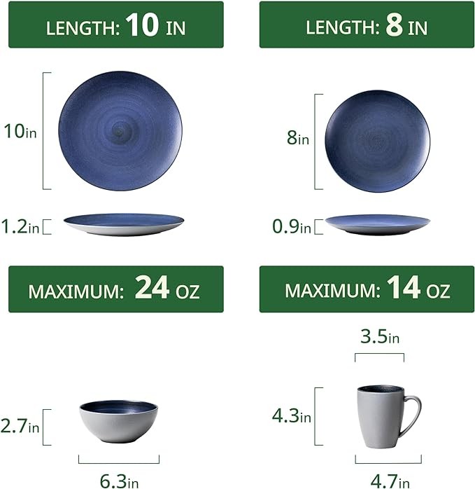 PERFECT FOR GIFTING: Our dinnerware set is cool and trendy. Especially in a fashionable blue and gray. This 2-tone glazed dinnerware set is popular with young people. Perfect gift for housewarming, Thanksgiving, Christmas and joyous celebrations.