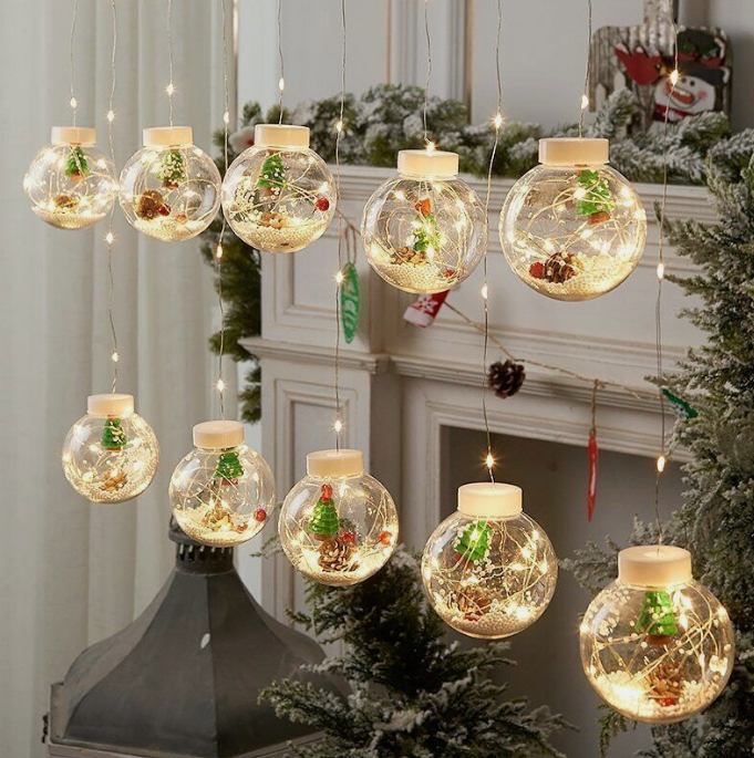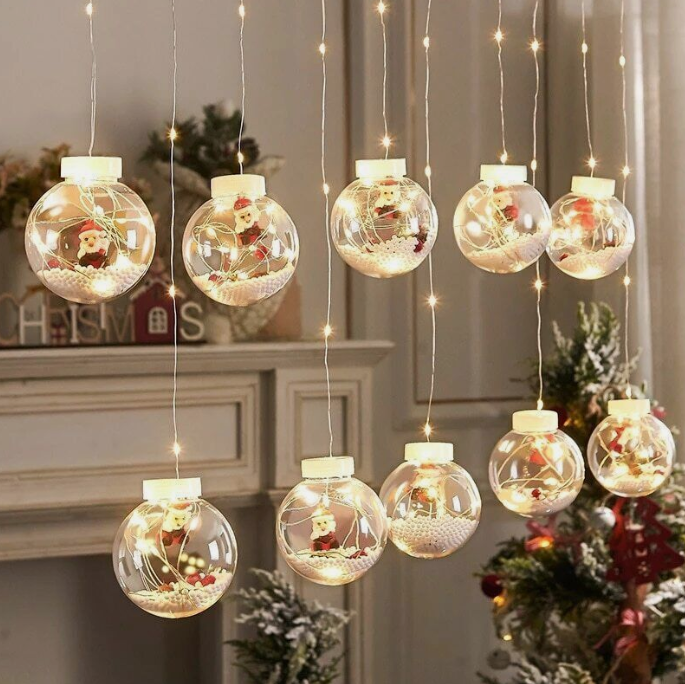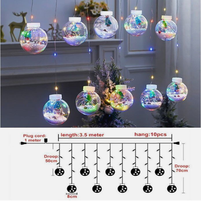 LED Curtain String Light Ball Santa Claus Snowman Xmas Tree Christmas Decoration