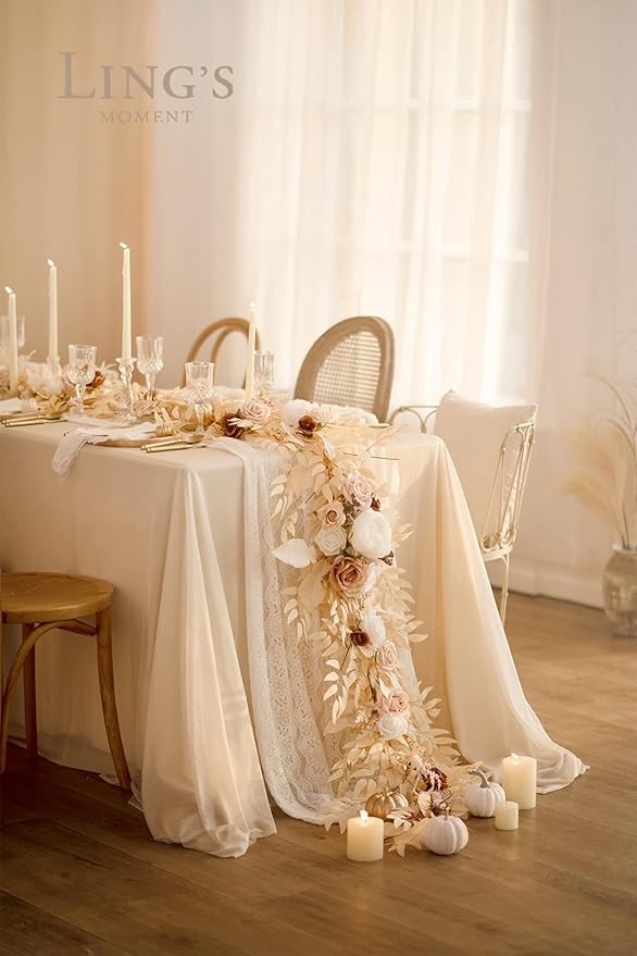 Ling's Moment Eucalyptus Garland with Flowers 6FT,Table Runner with Flowers Handcrafted Wedding Centerpieces for Rehearsal Dinner Bridal Shower | Beige