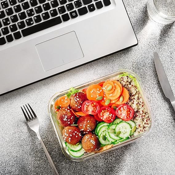 HIGH QUALITY BOROSILICATE GLASS:Our glass storage containers are made from high quality borosilicate glass, which is stronger than cheaper glass food storage containers, safely go straight from the refrigerator to the microwave or oven to the table.