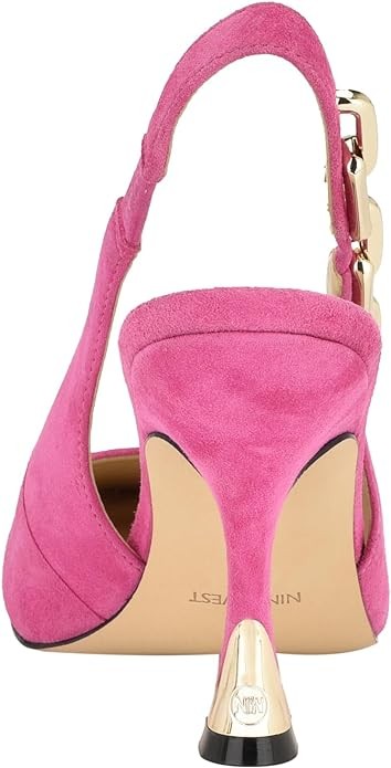 Chic and sophisticated, the Nine West Veroni slingbacks are the perfect wardrobe staple! The Veroni features a tapered heel, pointy toe and a slingback strap with gold chain detailing. Founded in 1978, Nine West empowers women to take on the world in style, from day to night.