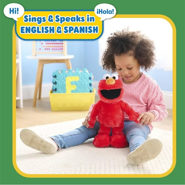 • Elmo Habla en Español: Elmo speaks and sings in English and Spanish! This bilingual Sesame Street preschool toy features Elmo phrases and song in both languages. Just slide the switch under its foot to select.