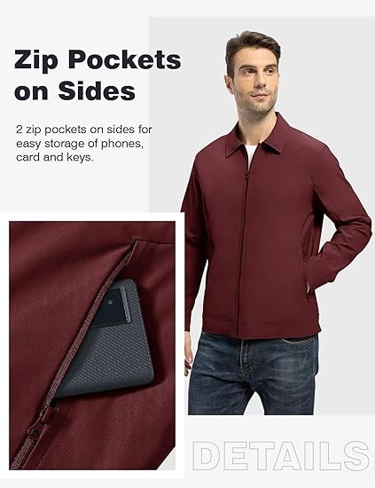 Windproof & Water-Resistant】On rainy or Windy weather days, men's lightweight jackets are water-resistant and effectively prevent rainwater from penetrating, Perfect adaptation to weather changes.