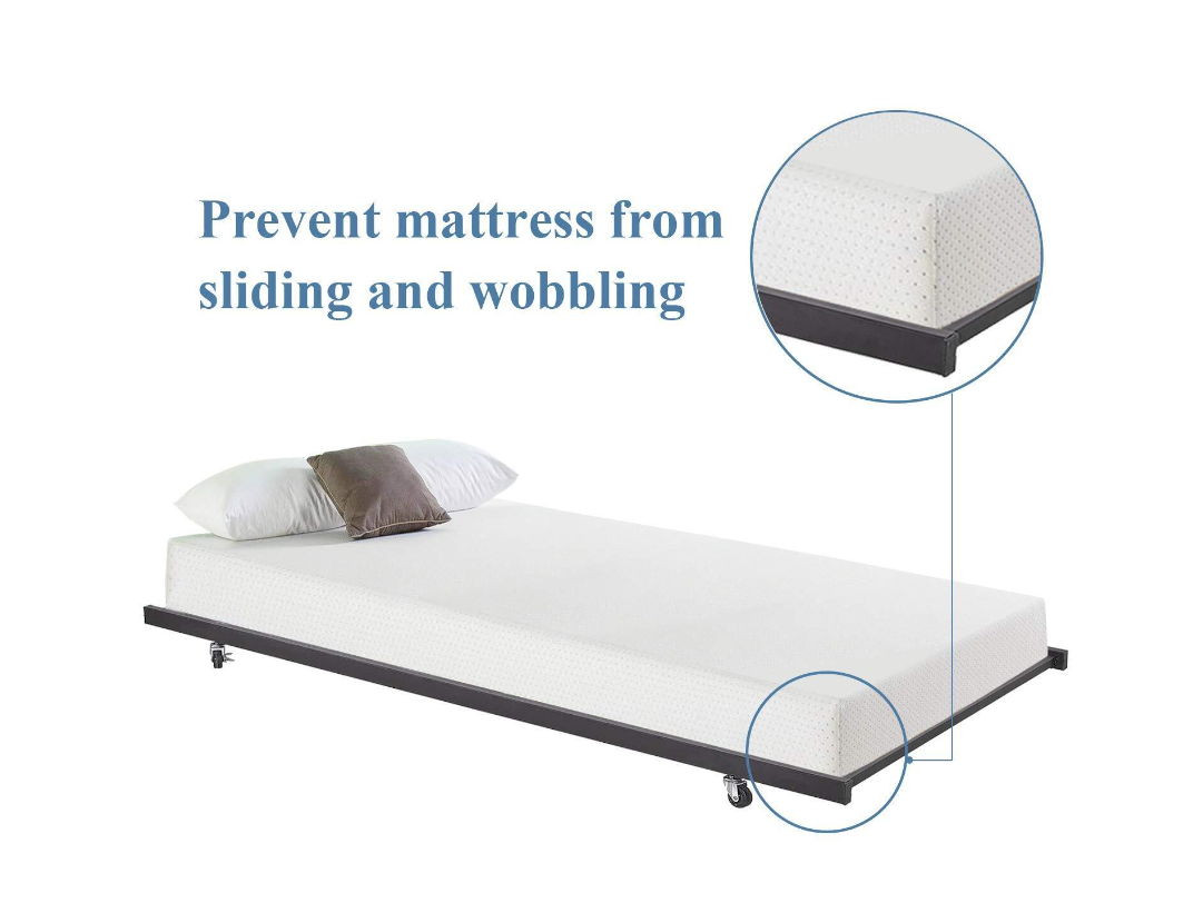 [Sturdy and stable]-- This bed frame is made of 4 legs and 11 heavy-duty steel slats to provide better support for your mattress. Capacity is 400 lbs. The square steel pipe structure is more stable than the circular steel pipe structure, which reduces the noise of the bed frame and prolongs the service life of the bed frame.