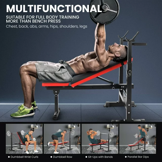 Foldable Design & Convenient Storage - The bench and the bench leg of this weight-lifting bed can be flipped up, and it can also be easily carried and put into a small room; The operation is simple and can save a lot of space, you can put it in a small and compact space such as a locker, corner, closet, garage...