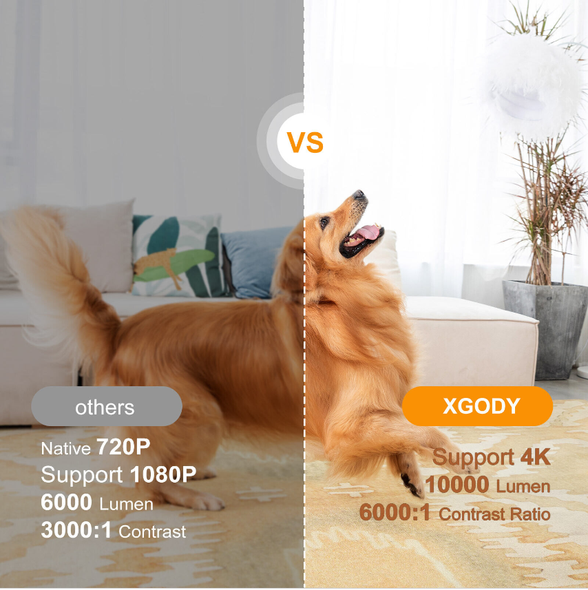 10000 lumens brightness, supports 4k@30fps, 1080p@60fps decoding, you can watch videos during the day and outdoors. 6000:1 contrast ratio, providing clear picture and a high-quality color experience.