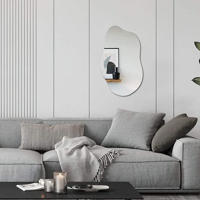Frameless irregular mirror: silver HD mirror is used the environmental protection material. It is safe and clear.
